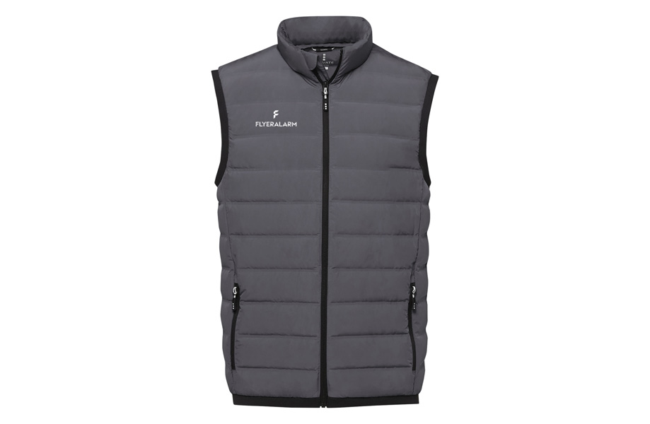 Gråtrist väder? Den perfekta tidpunkten för att glänsa med en trendig och funktionell outfit. Dunvästarna för herrar håller sina ägare behagligt varma även vid låga temperaturer. Det kan man tacka innerfodret av äkta återvunnet dun för. På så sätt behöver du inte kompromissa med kvaliteten och kan även bidra till hållbarhet. Dunvästarnas låga vikt garanterar maximal rörelsefrihet. Med din tryckta logotyp förvandlar du herrvästarna till ett trendigt måste.