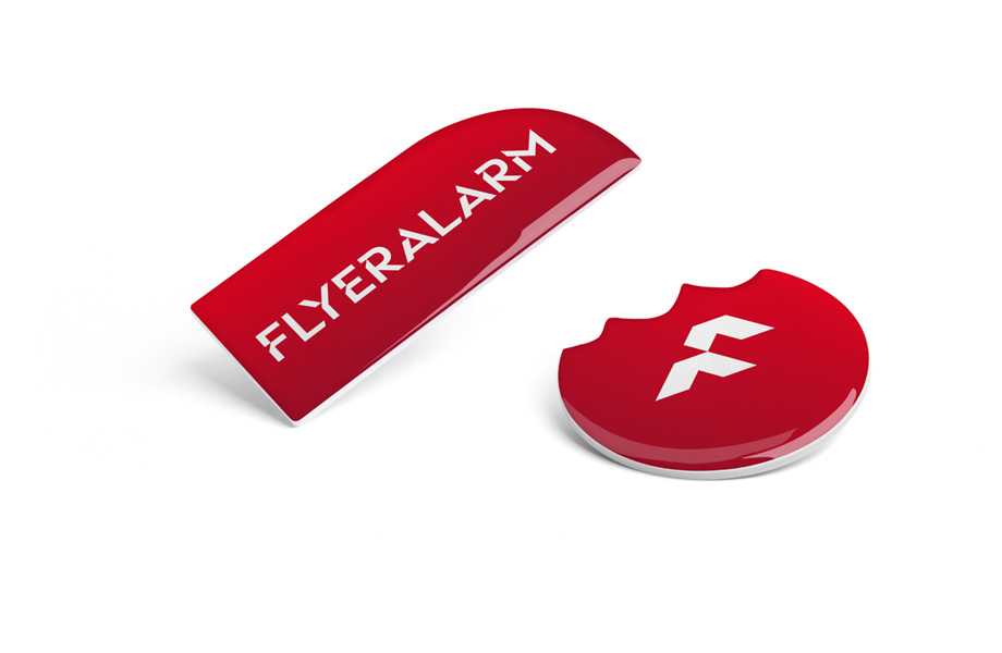 Litet blickfång som väcker maximal uppmärksamhet: De här knapparna med upphöjt gel-klistermärke (domad yta) kan inte bara tryckas komplett fotorealistiskt, utan kan även fås med individuell kontur. Vad innebär det? Naja, du bestämmer även formen på knappen. Skapa nu ett tydligt statement för konturen på dina logotyper, klubbmärken eller emblem som drar alla blickar till sig.
